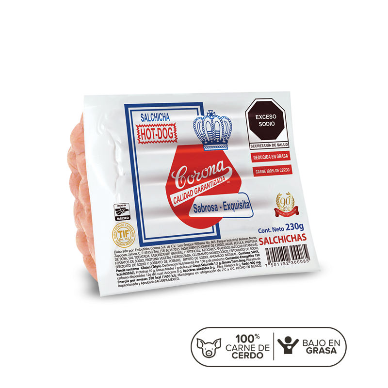 Finas salchichas sin colorantes artificiales, elaboradas con carne de cerdo seleccionada y condimentos exclusivos que hacen de las tradicionales Salchichas Viena Corona, La Decisión Natural. Riquísimas en recetas frías o calientes. ¿Te imaginas un ceviche de salchicha? ¿En brochetas asadas con pimiento morrón?